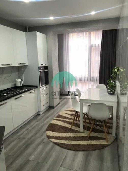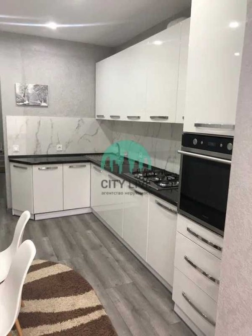 • Кухня-вітальня: простора та світла. Робоча зона з білими глянцевими фасадами, вбудованою духовкою, варильною поверхнею та великою кількістю місць для зберігання. Є затишна обідня зона.