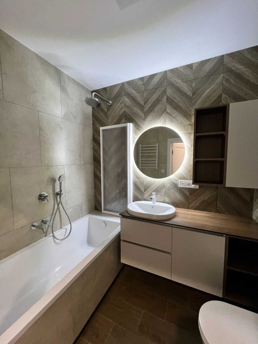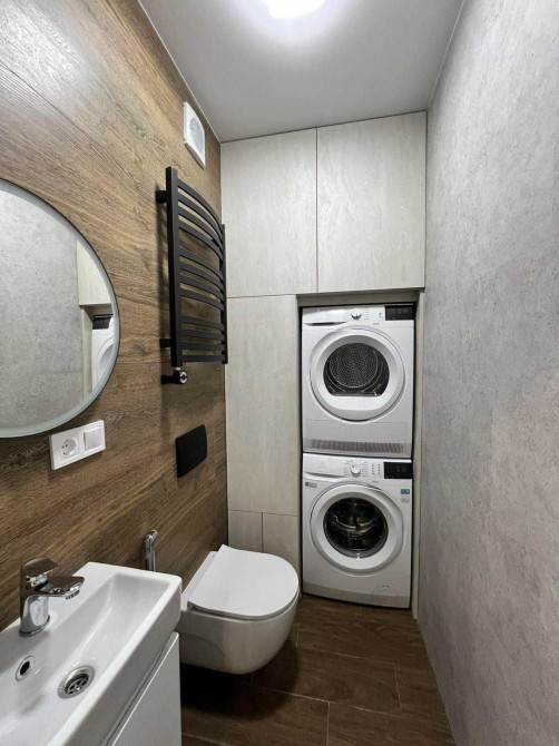• Санвузол: пральна + сушильна машини, ванна зі скляною перегородкою, дзеркала з підсвіткою, комбінована рушникосушка