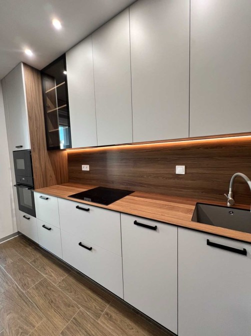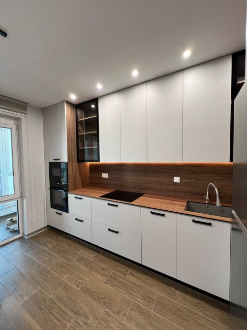 • Кухня: холодильник, посудомийна машина, індукційна поверхня, духова шафа, мікрохвильова, мінімальний набір посуду