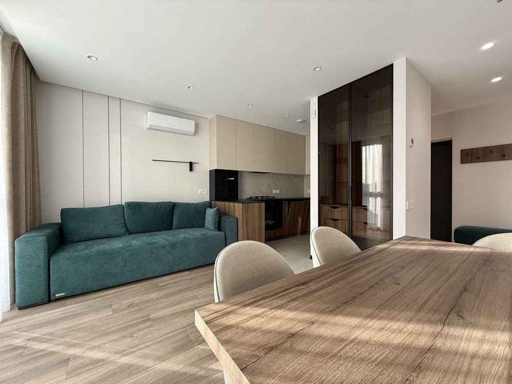 Реальна квартира! Перша здача після ремонту. Новобудова ЖК Авалон Ярд. Авторський ремонт, кухня вітальня, дві ізольовані кімнати, 2 СВ, індивідуальне опалення, підігрів підлоги, 3 кондиціонери, багато шаф, гардеробна, все необхідне для комфортного проживання. Без тварин. Вільна. Є відеоогляд. Гостьовий паркінг. Двір без авто, закрита територія з відеонаглядом. Підземний паркінг.