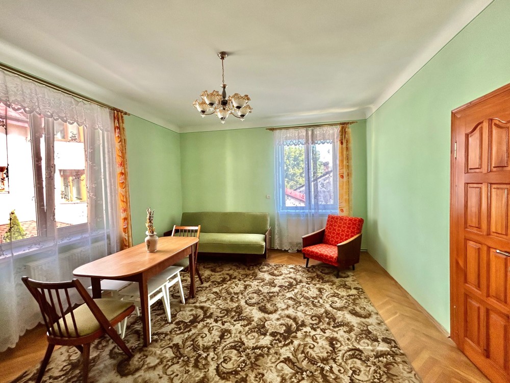 Хороша квартира особнякового типу, дві великі ізольовані світлі кімнати, простора кухня, власне подвірʼя, індивідуальне газове опалення. В особняку поміняний дах та вікна, нова сантехніка, наявні усі меблі та побутова техніка. Балкон. Буде зроблено генеральне прибирання. Хороші власники.