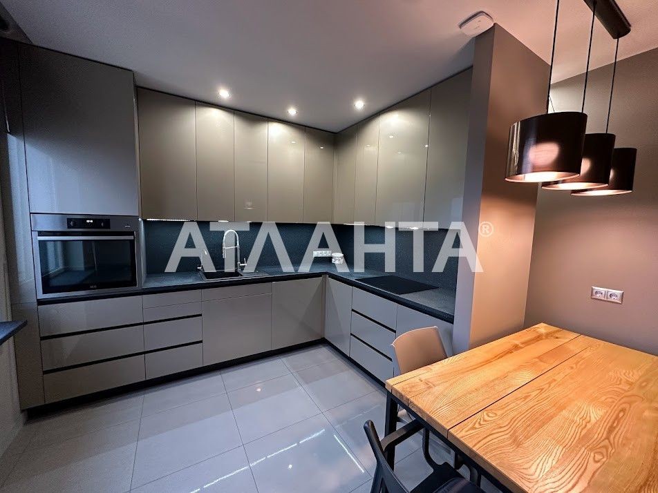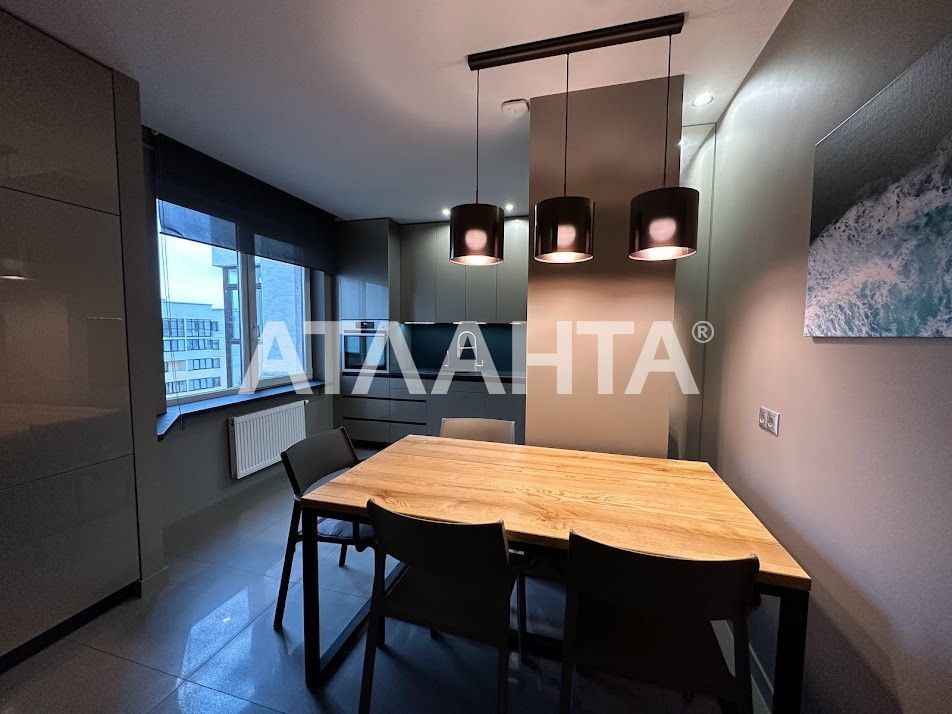 Квартира класу люкс, зроблений якісний та дороговартісний ремонт, два санвузли, гардеробна кімната, дизайнерські меблі, телевізори в усіх кімнатах, посудомийка, холодильник та вся необхідна техніка для проживання. Індивідуальне опалення, встановлено кондиціонер та сигналізація Аякс. Останній поверх з великою лоджією з робочи місцем та шикарним виглядом на місто. Закрита територія.