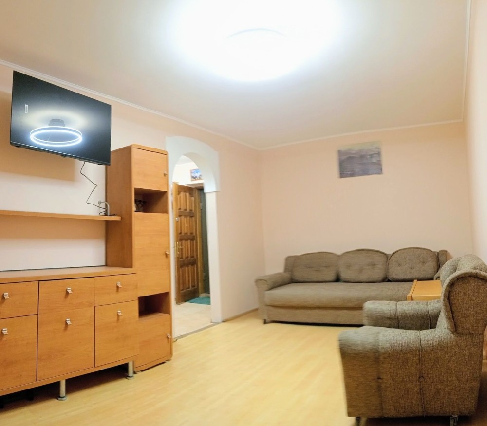 В квартирі є все необхідне для життя: 2 великих дивани, простора шафа-купе,телевізор - плазма, пральна машина, мікрохвильовка,великий холодильник, колонка, що дозволяє суттєво економити на ком. послугах за гарячу воду .Є засклений балкон