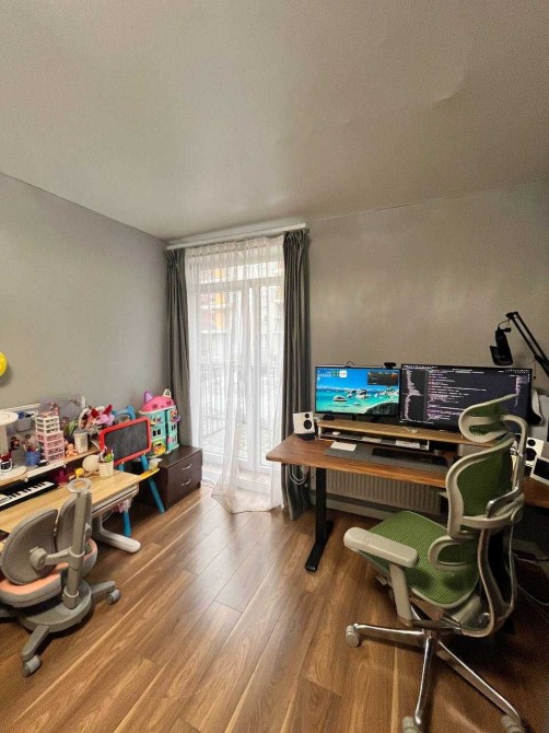 Кімната з розкладним диваном, шафа-купе, відео- нагляд, дитячий робочий стіл та робочий стіл під монітори ( до обговорення)вихід на відкритий балкон