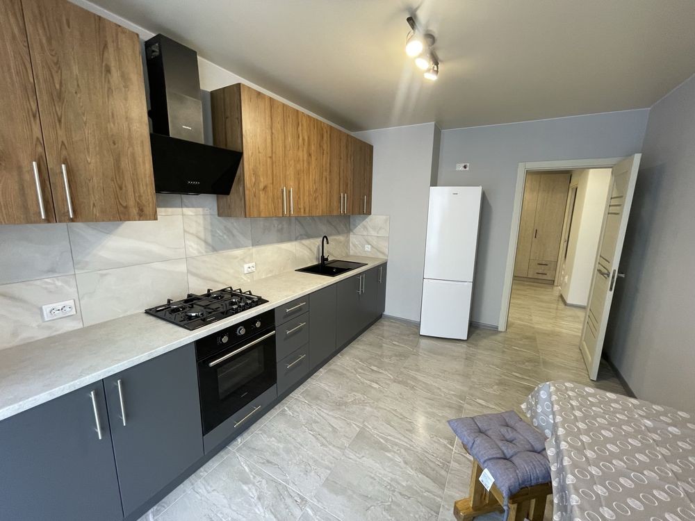 Оренда стильної 1 к кв з кухнею студією в новому будинку ЖК "Файна Таун" в Шевченківському районі, вул. Салютна, 2 Квартира 43 м2 , розташована на четвертому поверсі та складається з передпокою, спальні, великої кухні -студії та санвузла. Вікна квартири виходять в двір. Облаштована всіма необхідними меблями з екологічно чистої деревини та оснащена побутовою технікою: телевізор Samsung Smart 43, кондиціонери в кухні та кімнаті, плита індукційна, вбудований холодильник, духова шафа з функцією мікрохвильової печі, пральна машина з сушаркою. В кухні та ванній кімнаті тепла підлога, високошвидкісний інтернет. ЖК "Файна Таун" це: закрита територія з входом по картці, цілодобова охорона, відеоспостереження, паркінг, підземні контейнери для сміття, зарядні станції для електромобілів та лавки з інтегрованими батареями для підзарядки девайсів, розумне освітлення, яке підлаштовується під час доби та ще багато чого для того, щоб жити з комфортом й ні в чому себе не обмежувати) розповім при перегляді. Зручне транспортне сполучення та розвинута інфраструктура: магазини,спортивні та пішохідні зони ,зона барбекю, ресторани та кафе. Квартира, в якій поєднані комфорт та затишок, шукає своїх порядних орендарів молоду пару або одну людину без дітей та тварин. Перша оренда, квартира вільна.