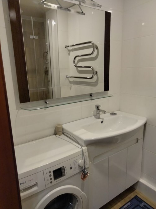 Однокімнатна квартира з усіма зручностями (+бойлер, холодильник і пральна машина, тепловий лічильник у під'їзді). Насявні необхідні меблі для комфортного проживання. У пішій доступності, зупинка транспорту до Києва, аптеки, ресторани, продуктові та ТЦ.