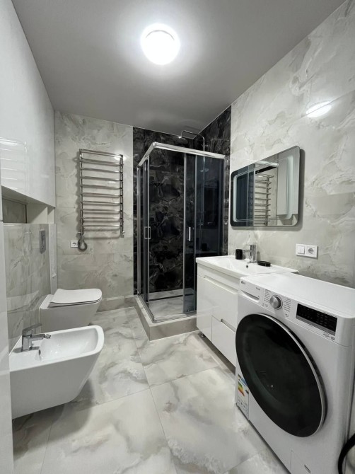 Повністю укомплектована сучасною технікою: прально-сушильна машина, посудомийна машина, телевізор, два кондиціонери. По всій квартирі облаштована тепла підлога, що створює відчуття затишку. У спальні є вихід на гарний балкон, а містка велика шафа забезпечить зручне зберігання одягу та речей.