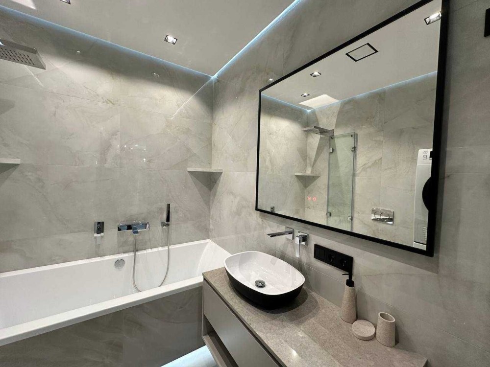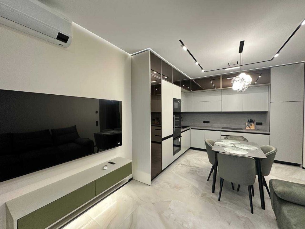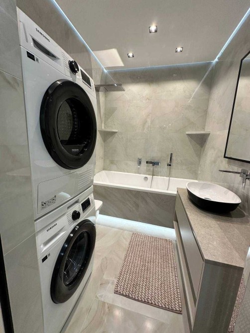 Квартира повністю укомплектована до проживання. З техніки: пральна машина, сушильна машина, посудомийна машина, холодильник, варильна поверхня, духова шафа, чайник, кондиціонер, телевізор, праска, пилосос, відеодомофон, роутер.