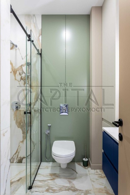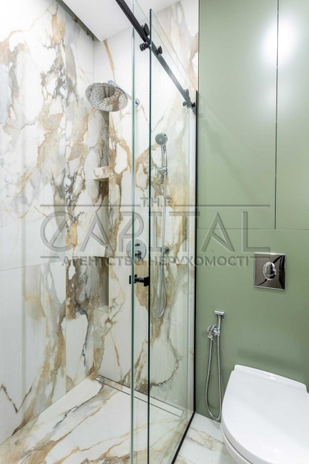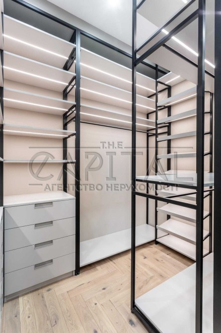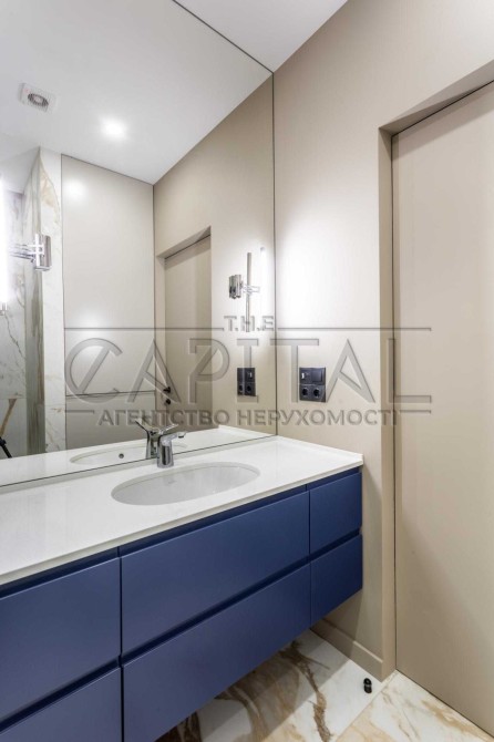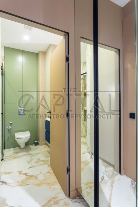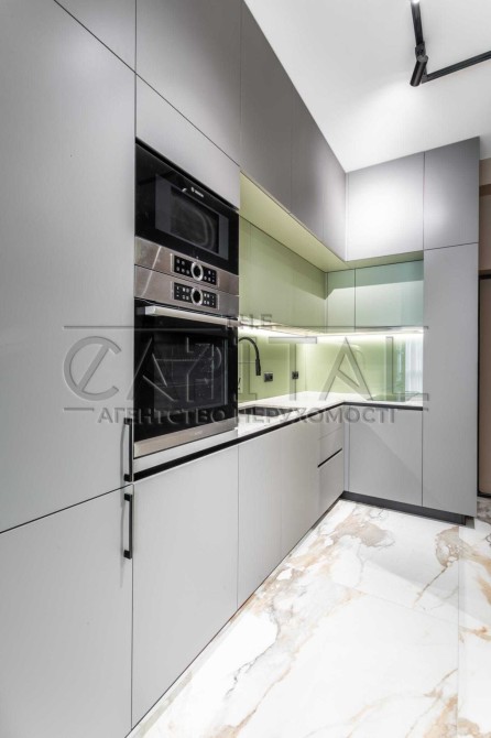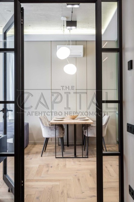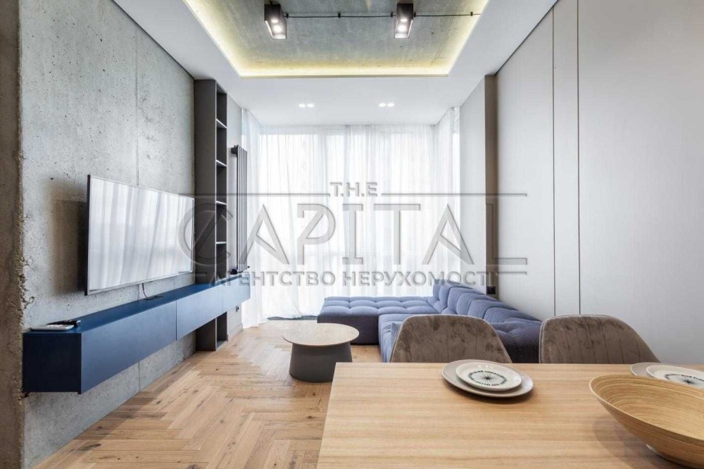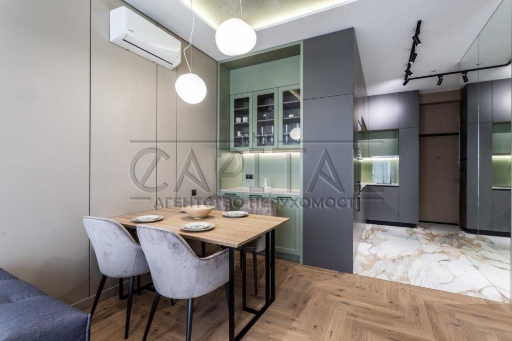 Ця квартира відзначається ексклюзивним дизайнерським ремонтом та має всі зручності для комфортного проживання. У ній є окрема гардеробна, окрема спальня та простора кухня-студія. Спальню та гардеробну розділяє стильна алюмінієва скляна перегородка з підсвіткою.