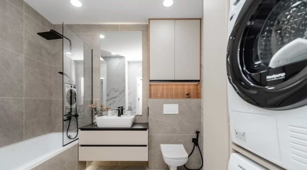 Санвузол сучасний, з новою якісною сантехнікою. Квартира тепла, добре ізольована, з великими вікнами, що забезпечують багато природного світла.