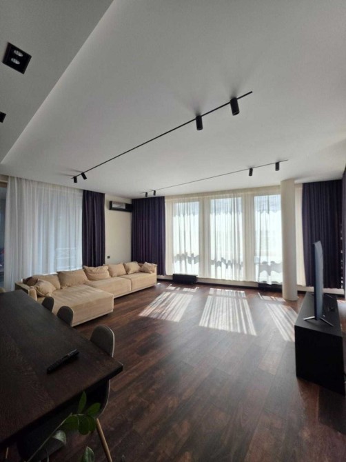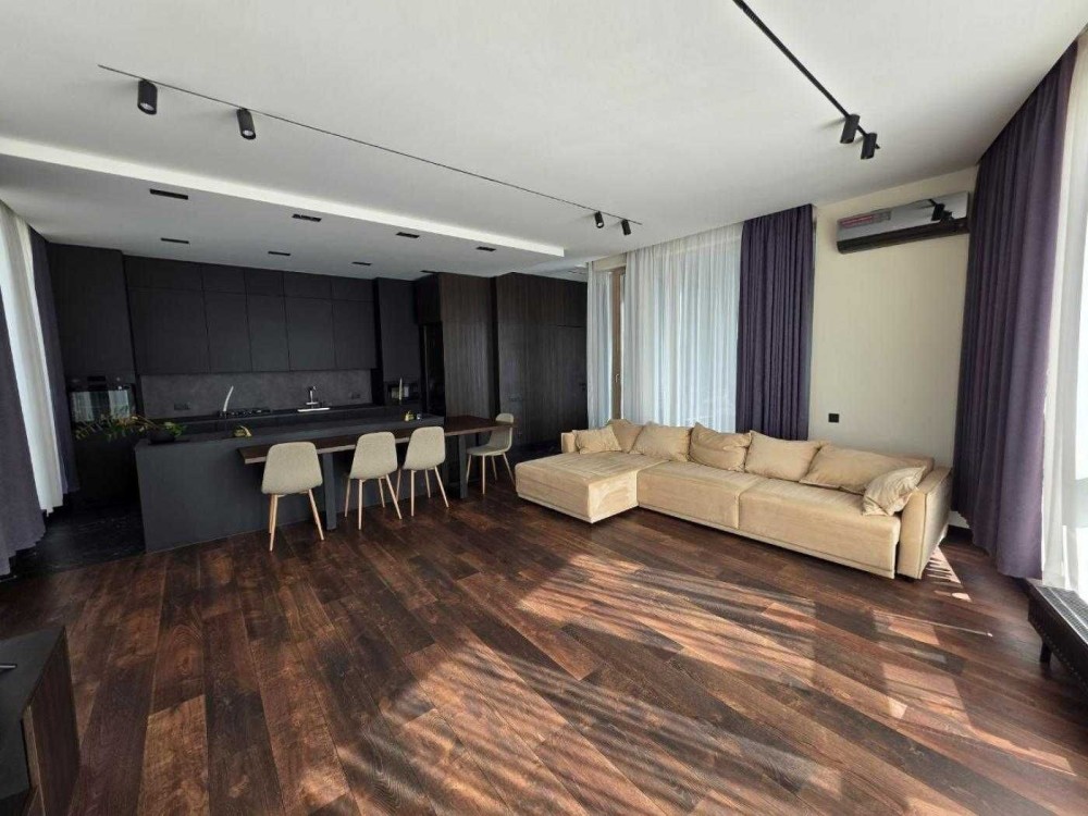 Квартира складається із двох ізольованих кімнат, двох санвузлів, гардеробної, в батьківській спальні є своя гардеробна та велика тераса.