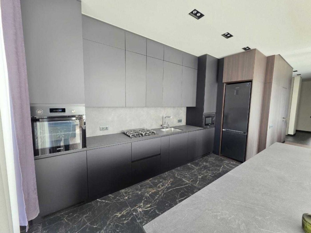 Техніка: холодильник, посудомийна машина, варильна панель, духова шафа, мікрохвильова піч, пральна машина, сушильна машина, кондиціонер, осмос, на літо встановленні москітні сітки.