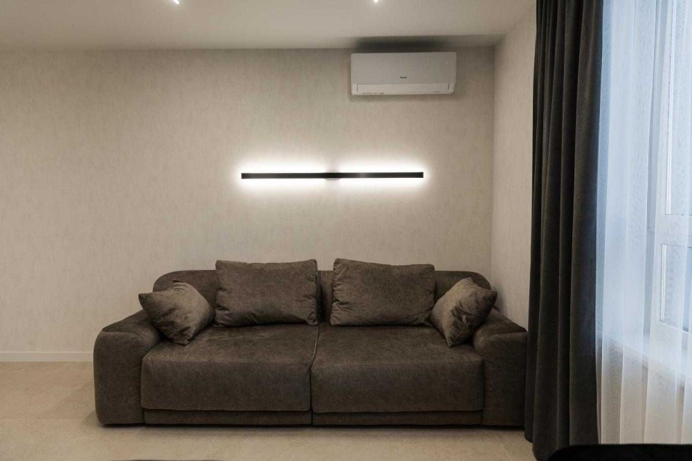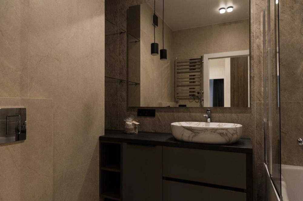 • Ремонт виконаний за індивідуальним дизайн-проєктом у сучасному стилі.