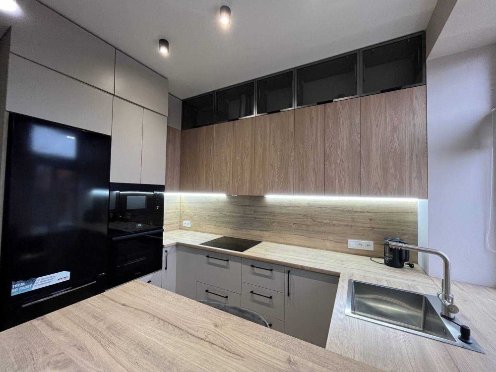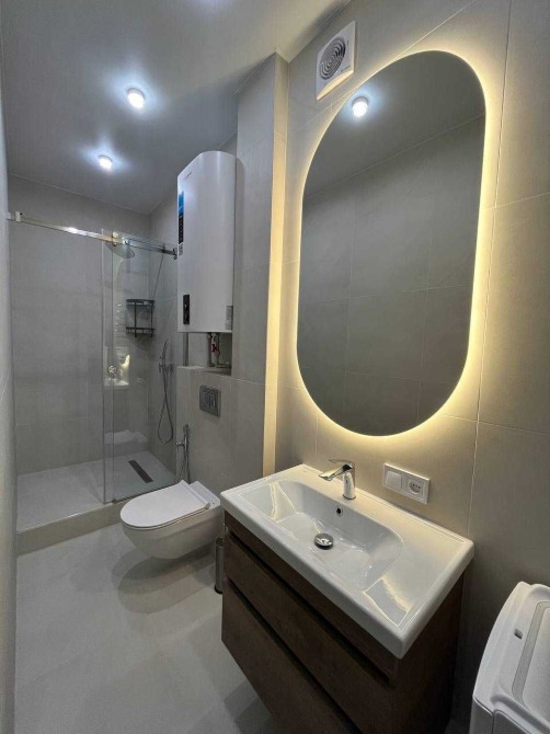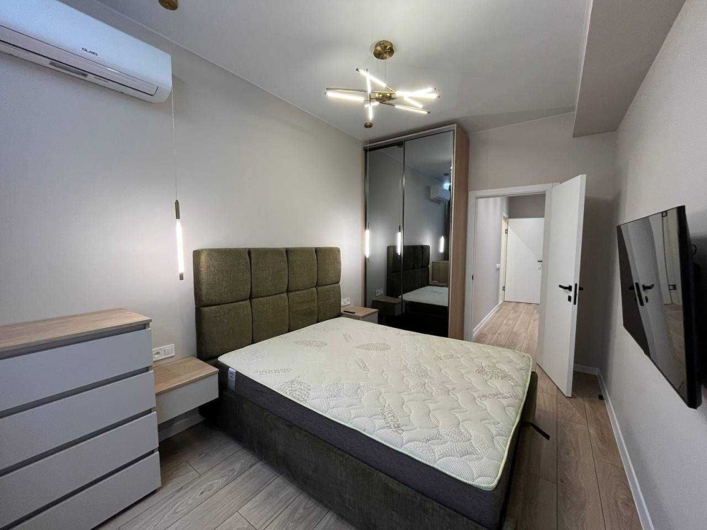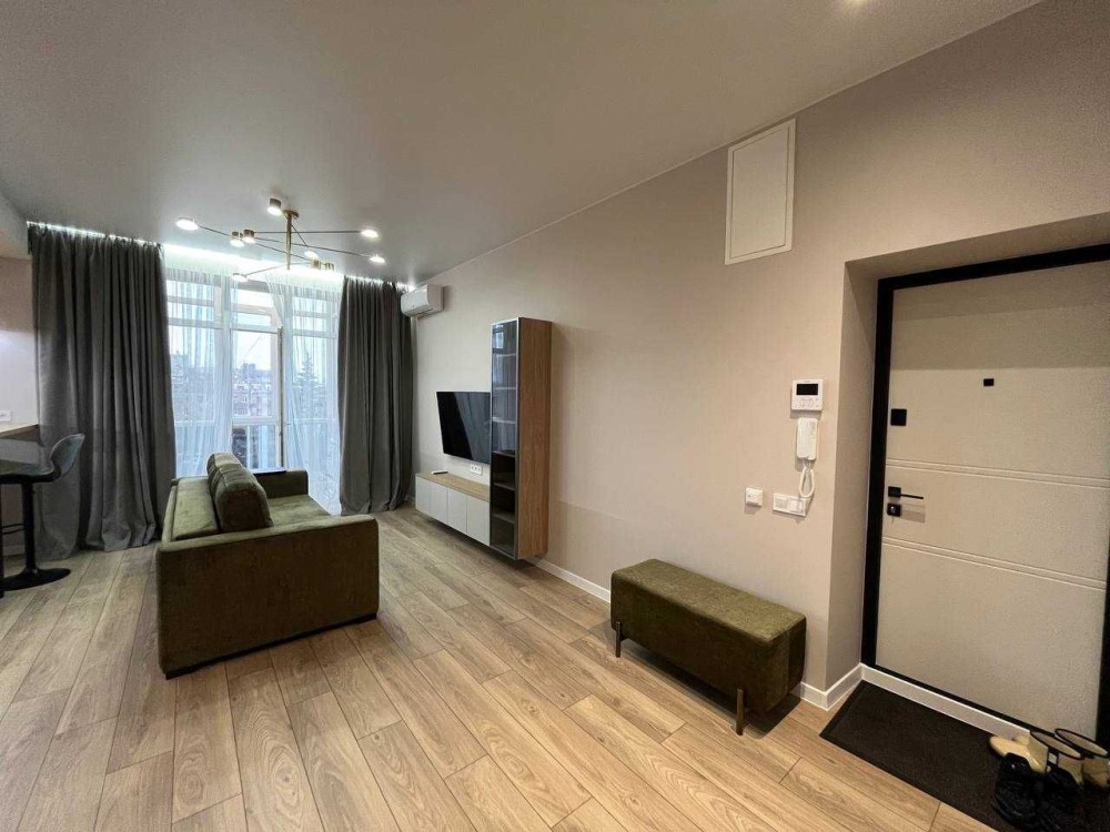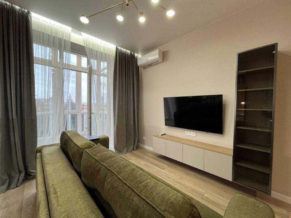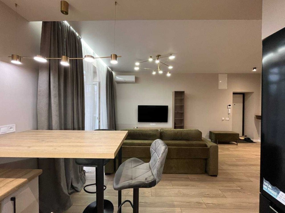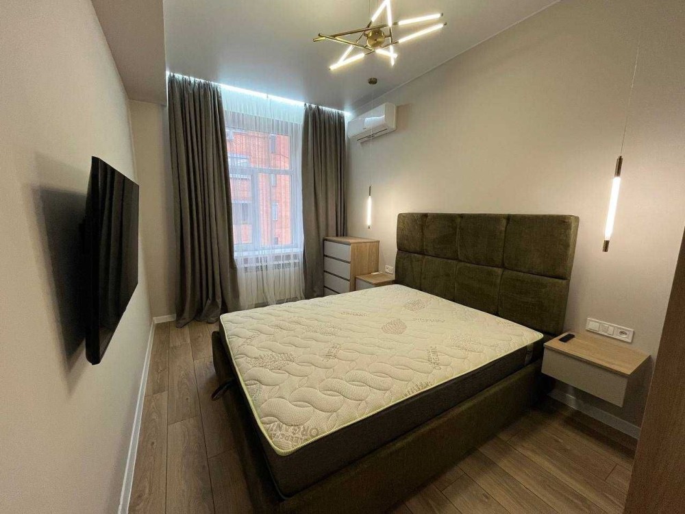 Квартира з євро ремонтом, укомплектована всіма меблями та технікою: бойлер, пральна машина, сушарка для рушників, холодильник, ел. варильна панель, витяжка, ел. духовка, мікрохвильова піч, ел. чайник, посудомийка, 2 телевізори, 2 кондиціонери, відеодомофон. Розкішний панорамний балкон. По всій квартирі тепла підлога, крім спальні.