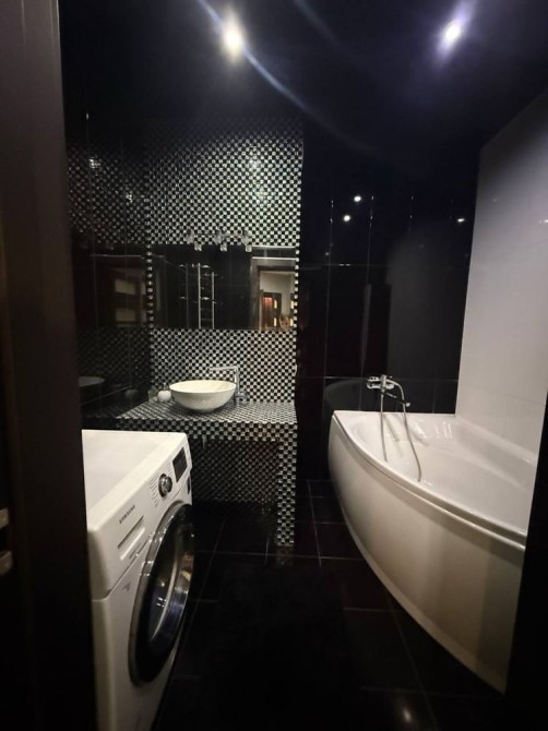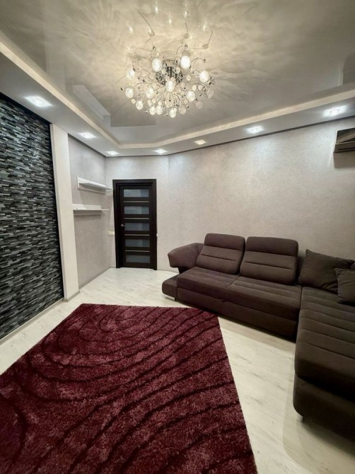 Велика кухня та столова зона, дві кімнати, великий гардероб, два роздільні санвузли. Квартира повністю мебльована та укомплектована всім необхідним — можна заселятись одразу.