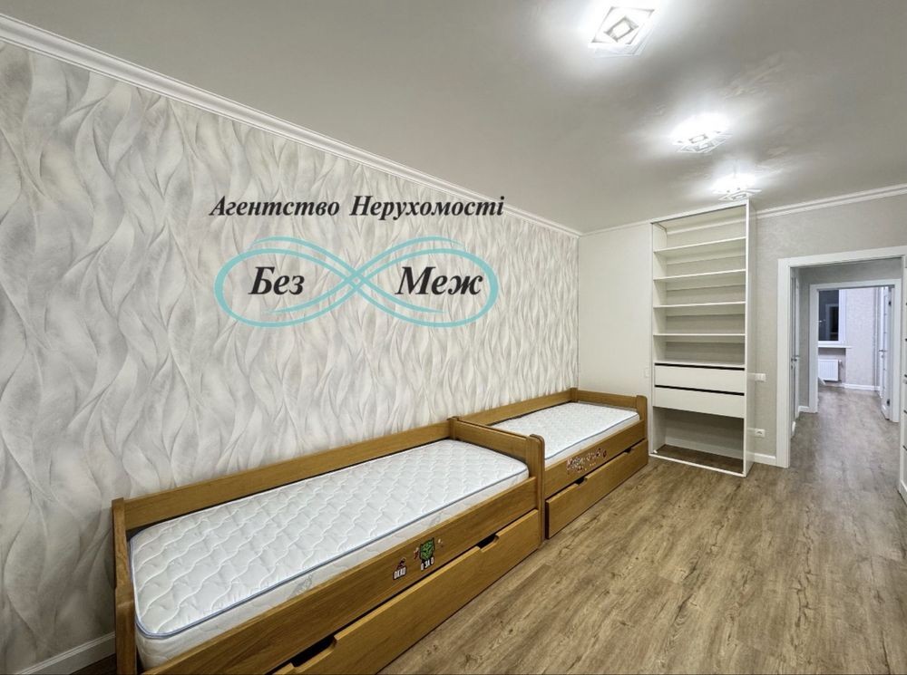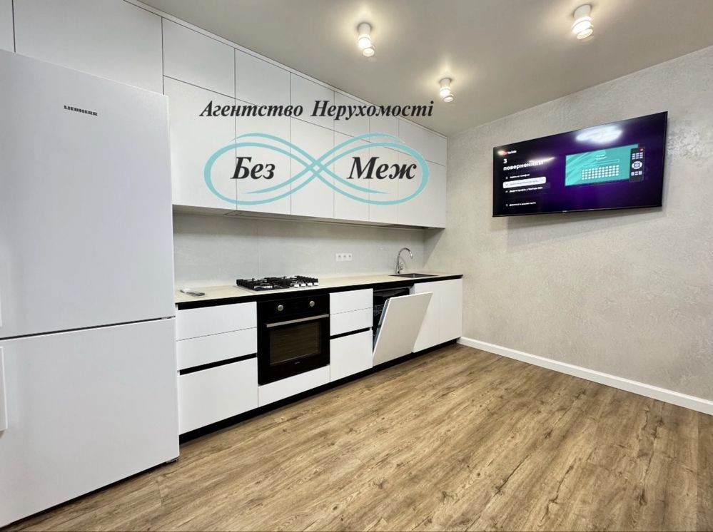 Квартира укомплектована всіма меблями та технікою а саме: вбудована кухня з витяжкою, холодильник, посудомийна машина, стіл зі стільцями, кондиціонер, диван, телевізор, двоспальне ліжко, пральна машина, сушка, в дитячій два ліжка, робоча зона, відео-домофон, в кожній кімнаті великі вбудовані шафи.