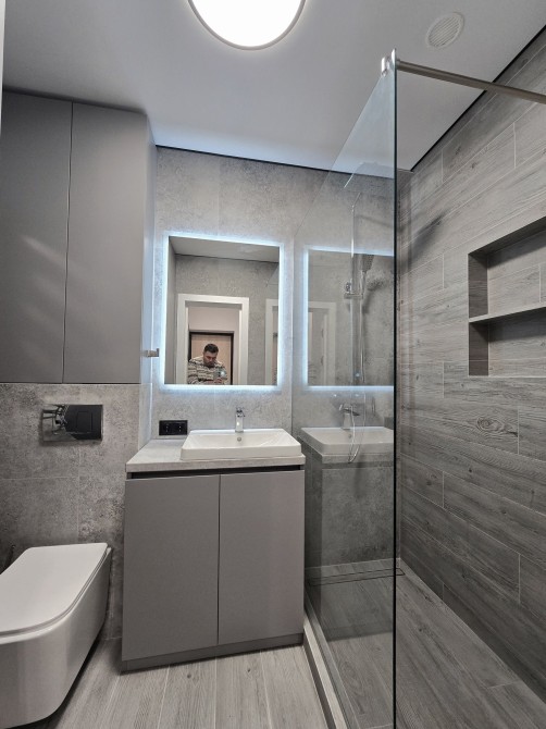 Квартира повністю обладнана меблями та технікою (холодильник, посудомийка, духовка, бойлер, пралка, роутер), є електро тепла підлога санвузла, фільтрація води.