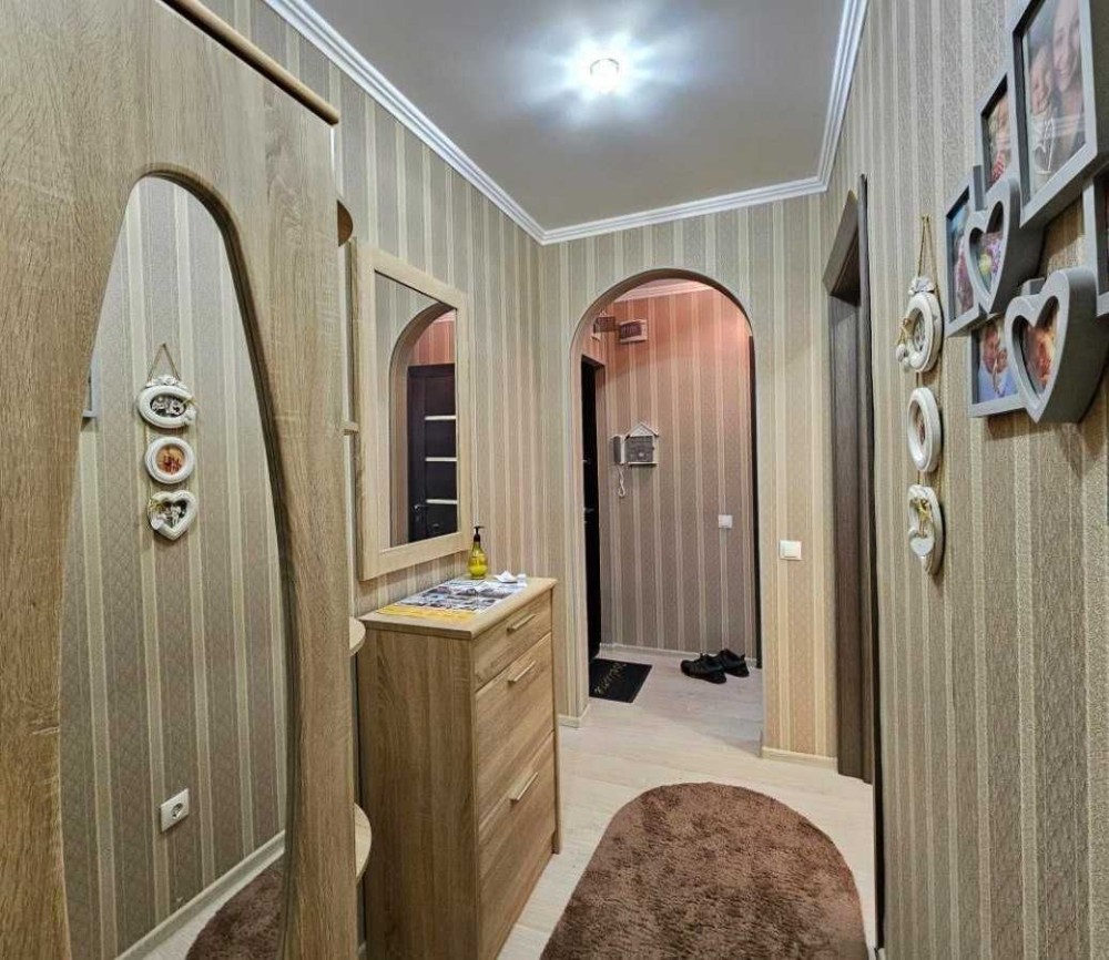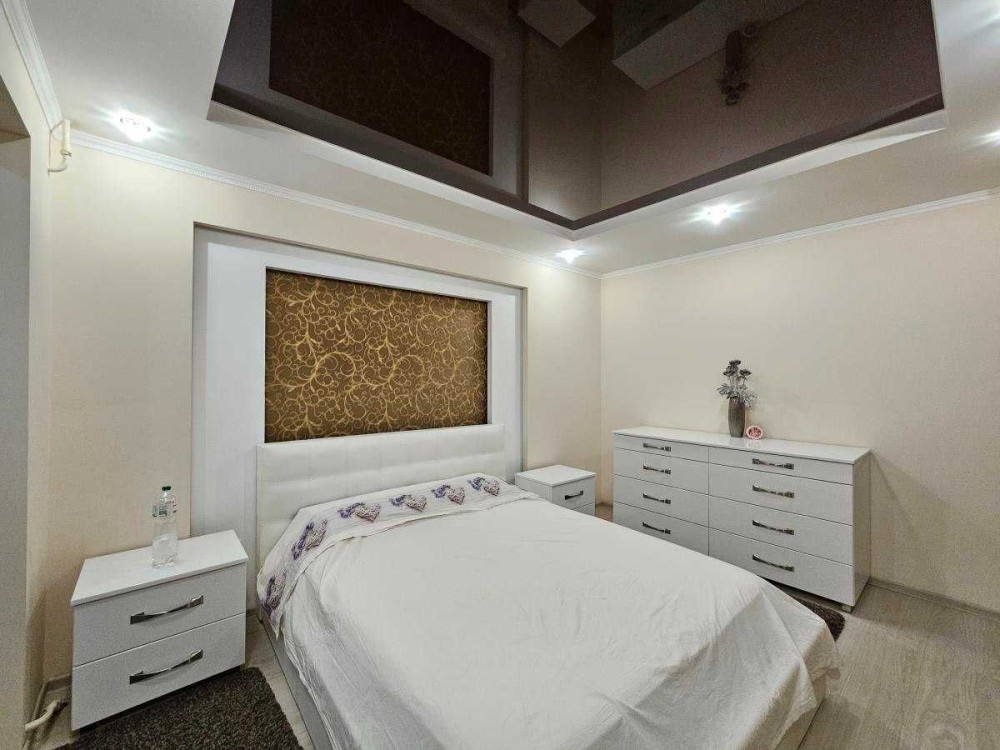 У  спальні шафа-купе та двоспальне ліжко. Комод та тумби, що є на фото відсутні.