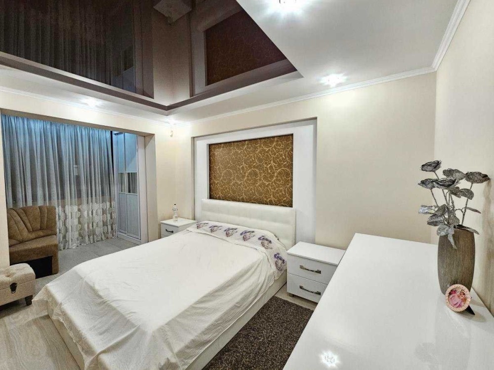 Код: 172. ПОМЕСЯЧНО АРЕНДА АКТУАЛЬНА В ПЕРИОД С 01.09 ДО 30.05 (в летний сезон сдается посуточно от 2-х суток, раннее бронирование от 5-и суток и более). Пятикомнатная квартира в центре Одессы, ул. Дерибасовская/угол Греческой площади, 2/3 - эт. дома - памятника архитектуры, общая площадь 100 кв. м. Авторский ремонт, сочетание классики и современного стиля, качественные материалы, высокие потолки (5 м.), большой зал в двух уровнях с LCD телевизором, четыре спальни с большими двуспальными кроватями, дорогая итальянская мебель, кожаная мягкая мебель, огромная круглая кровать в центре главной спальни, создают атмосферу абсолютного комфорта. Санузел с джакузи на 2 места. Квартира оборудована: 3 кондиционера, плазменный TV + 2 LCD TV в спальнях, WI-FI интернет, большая джакузи, DVD, стиральная машина, CD-магнитола, спутниковое ТВ, микроволновая печь, фен, кофеварка, тостер, телефон. Прекрасный вид из окон на Греческую площадь. Удачное расположение дома, самое сердце Одессы, множество достопримечательностей, потрясающая архитектура, множество кафе и ресторанов под открытым небом. Напротив дома (в самом центре Греческой площади) расположен большой торговый центр «Афина» (с платным подземным паркингом). Вход в дом - железные ворота с домофоном. Допускается проживание с животными. Аренда от 1-го месяца и более. Стоимость может варьироваться в зависимости от срока аренды. Перед просмотром уточните наличие и детали по VIBER, WHATSAPP или TELEGRAM, указав «КОД» из объявления. КОМИССИЯ ЗА УСЛУГИ РИЭЛТОРА - 50% от месячной аренды (разовая оплата при оформлении договора).