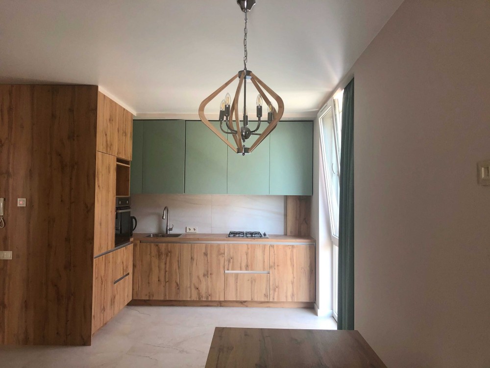 Спальні ліжко з якісним ортопедичним матрасом, розкладний диван, 2 шафи-купе, кухонні меблі з магнітними фіксаторами.