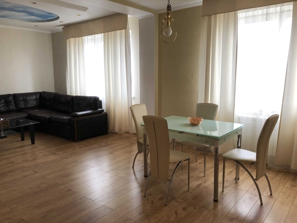 Код: 172. ПОМЕСЯЧНО АРЕНДА АКТУАЛЬНА В ПЕРИОД С 01.09 ДО 30.05 (в летний сезон сдается посуточно от 2-х суток, раннее бронирование от 5-и суток и более). Пятикомнатная квартира в центре Одессы, ул. Дерибасовская/угол Греческой площади, 2/3 - эт. дома - памятника архитектуры, общая площадь 100 кв. м. Авторский ремонт, сочетание классики и современного стиля, качественные материалы, высокие потолки (5 м.), большой зал в двух уровнях с LCD телевизором, четыре спальни с большими двуспальными кроватями, дорогая итальянская мебель, кожаная мягкая мебель, огромная круглая кровать в центре главной спальни, создают атмосферу абсолютного комфорта. Санузел с джакузи на 2 места. Квартира оборудована: 3 кондиционера, плазменный TV + 2 LCD TV в спальнях, WI-FI интернет, большая джакузи, DVD, стиральная машина, CD-магнитола, спутниковое ТВ, микроволновая печь, фен, кофеварка, тостер, телефон. Прекрасный вид из окон на Греческую площадь. Удачное расположение дома, самое сердце Одессы, множество достопримечательностей, потрясающая архитектура, множество кафе и ресторанов под открытым небом. Напротив дома (в самом центре Греческой площади) расположен большой торговый центр «Афина» (с платным подземным паркингом). Вход в дом - железные ворота с домофоном. Допускается проживание с животными. Аренда от 1-го месяца и более. Стоимость может варьироваться в зависимости от срока аренды. Перед просмотром уточните наличие и детали по VIBER, WHATSAPP или TELEGRAM, указав «КОД» из объявления. КОМИССИЯ ЗА УСЛУГИ РИЭЛТОРА - 50% от месячной аренды (разовая оплата при оформлении договора).