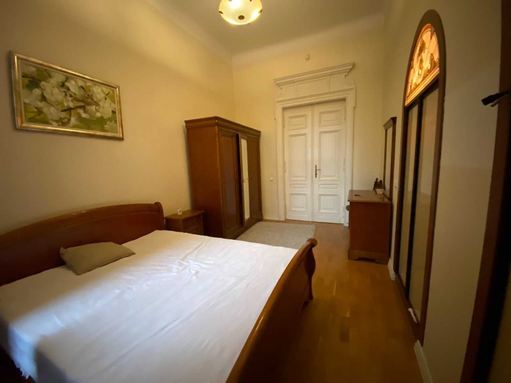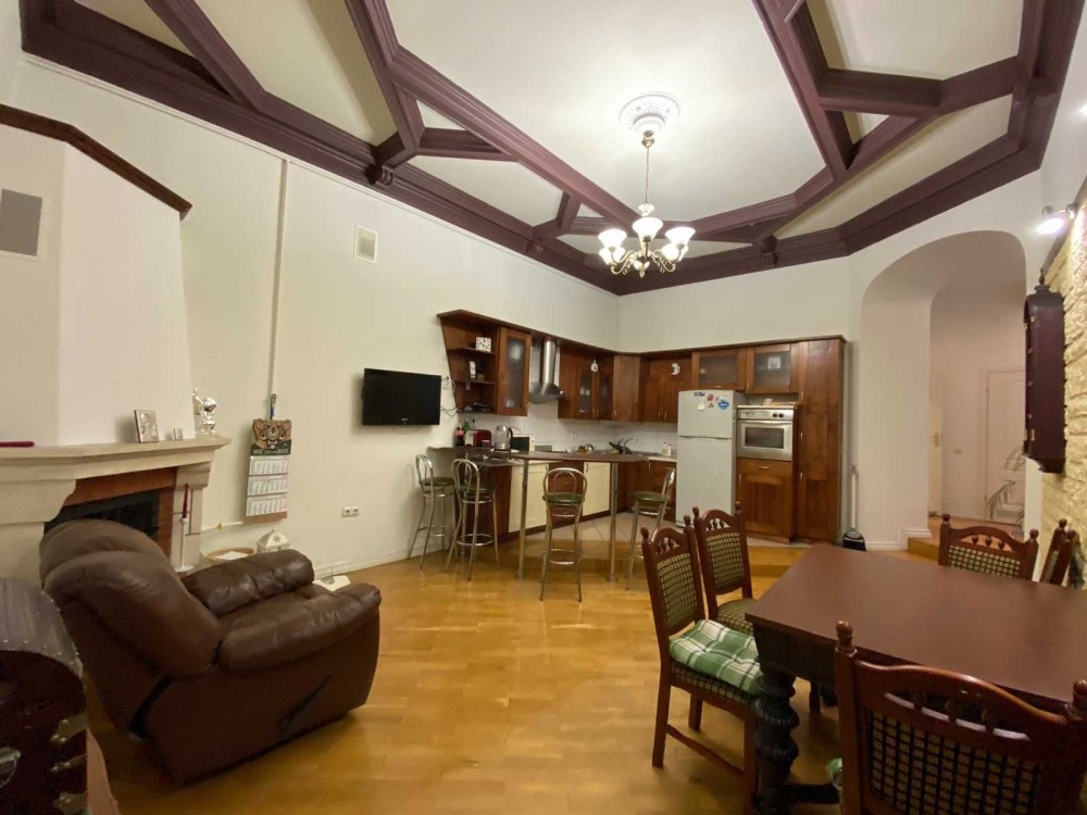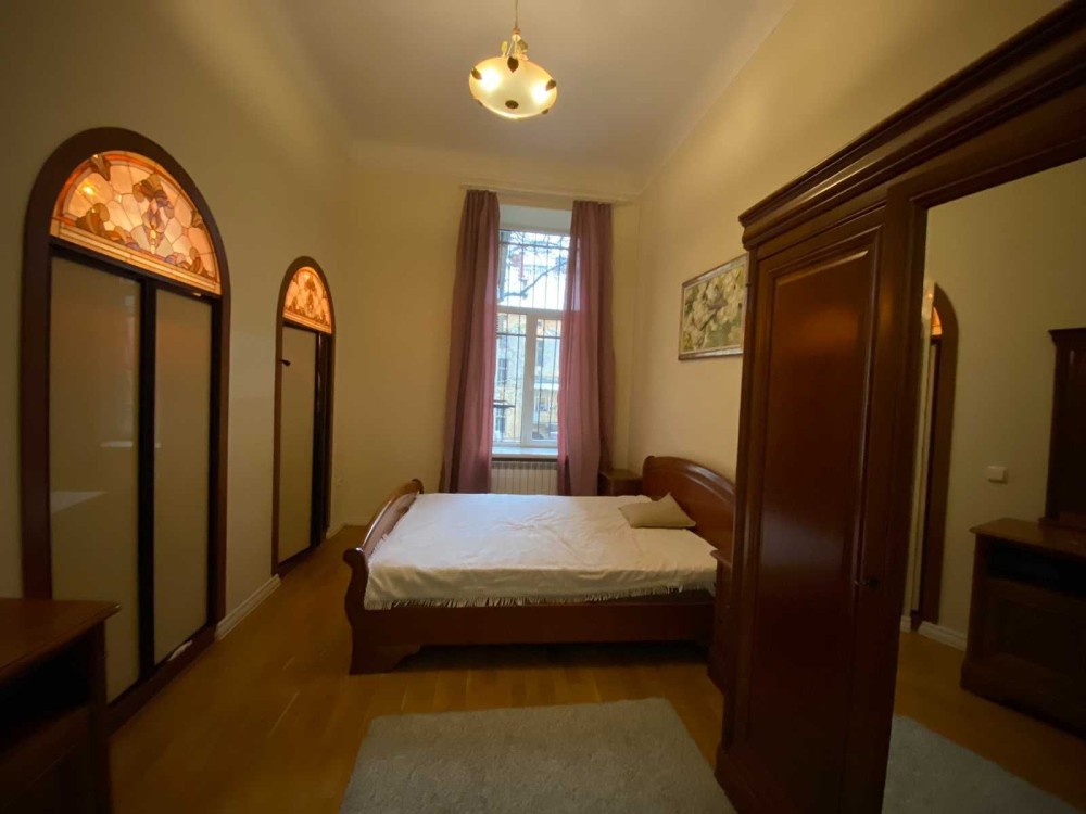 Код: 172. ПОМЕСЯЧНО АРЕНДА АКТУАЛЬНА В ПЕРИОД С 01.09 ДО 30.05 (в летний сезон сдается посуточно от 2-х суток, раннее бронирование от 5-и суток и более). Пятикомнатная квартира в центре Одессы, ул. Дерибасовская/угол Греческой площади, 2/3 - эт. дома - памятника архитектуры, общая площадь 100 кв. м. Авторский ремонт, сочетание классики и современного стиля, качественные материалы, высокие потолки (5 м.), большой зал в двух уровнях с LCD телевизором, четыре спальни с большими двуспальными кроватями, дорогая итальянская мебель, кожаная мягкая мебель, огромная круглая кровать в центре главной спальни, создают атмосферу абсолютного комфорта. Санузел с джакузи на 2 места. Квартира оборудована: 3 кондиционера, плазменный TV + 2 LCD TV в спальнях, WI-FI интернет, большая джакузи, DVD, стиральная машина, CD-магнитола, спутниковое ТВ, микроволновая печь, фен, кофеварка, тостер, телефон. Прекрасный вид из окон на Греческую площадь. Удачное расположение дома, самое сердце Одессы, множество достопримечательностей, потрясающая архитектура, множество кафе и ресторанов под открытым небом. Напротив дома (в самом центре Греческой площади) расположен большой торговый центр «Афина» (с платным подземным паркингом). Вход в дом - железные ворота с домофоном. Допускается проживание с животными. Аренда от 1-го месяца и более. Стоимость может варьироваться в зависимости от срока аренды. Перед просмотром уточните наличие и детали по VIBER, WHATSAPP или TELEGRAM, указав «КОД» из объявления. КОМИССИЯ ЗА УСЛУГИ РИЭЛТОРА - 50% от месячной аренды (разовая оплата при оформлении договора).