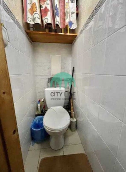 • Туалет: Компактний туалет, оброблений білою плиткою, є невелика поличка для зберігання.