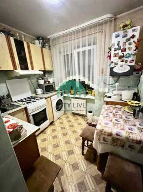 • Обладнання: Кухонний гарнітур з верхніми та нижніми шафами, газова плита з духовкою, пральна машина, холодильник.