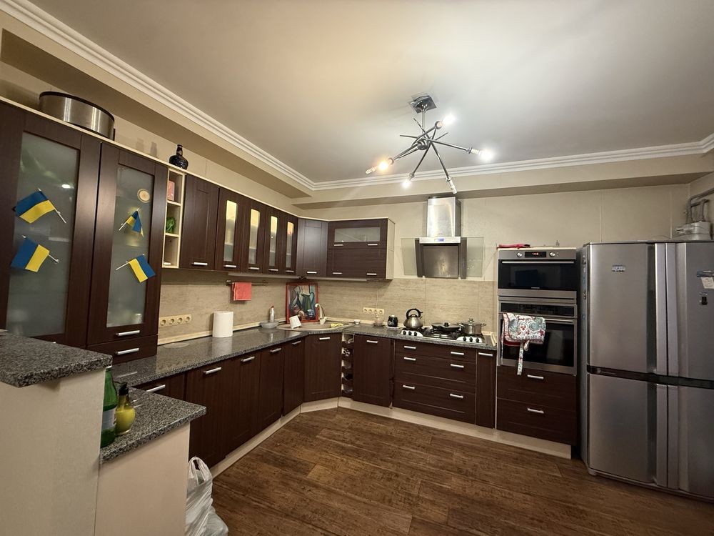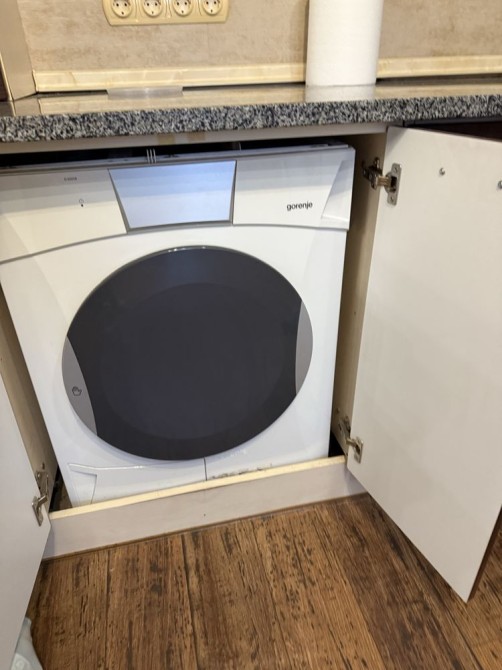 Є вся необхідна техніка та меблі: пральна та сушильна машина, великий холодильник, морозильна камера, посудомийна машина.