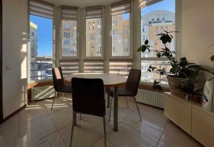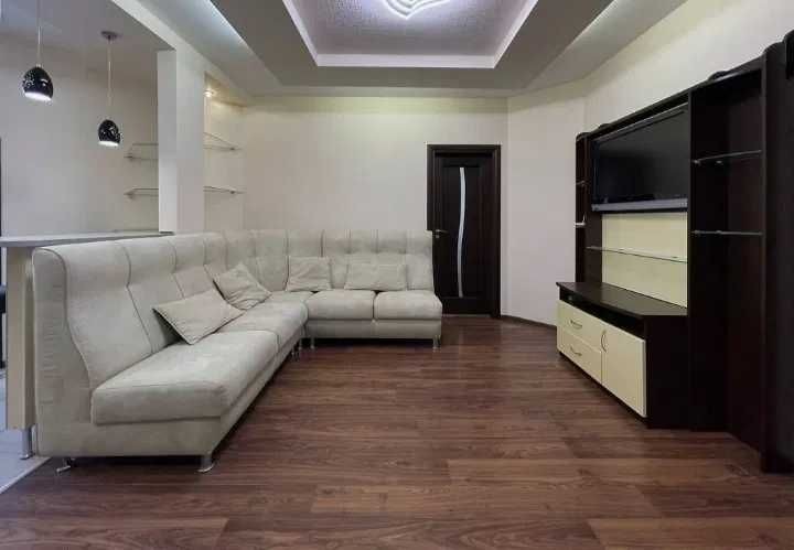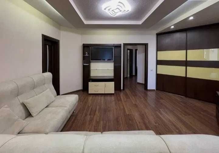 Простора, світла квартира з якісним євроремонтом. Планування дуже зручне: три ізольовані кімнати, велика кухня-студія 30 м², засклена лоджія. Повністю мебльована та оснащена технікою (холодильник, духова, мікрохвильова, пральна машина, пилосос).