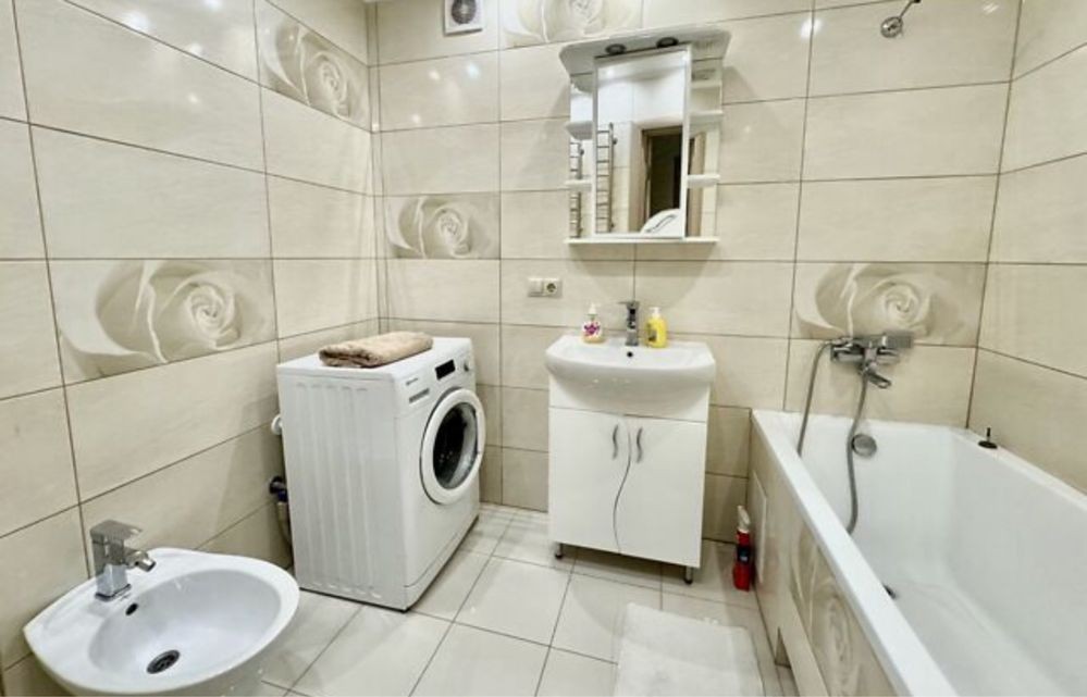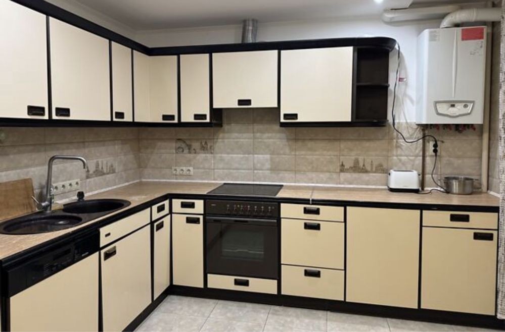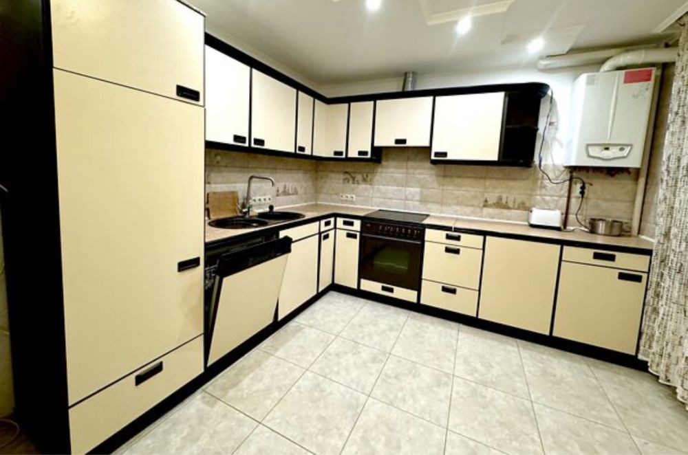 Облаштована усіма необхідними меблями та побутовою технікою, є посудомийка.