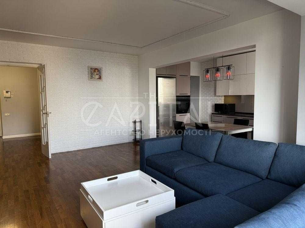 Пропонується в оренду простора 3-кімнатна квартира з дизайнерським ремонтом у Печерському районі. Загальна площа — 105 м², висота стель — 3 м.