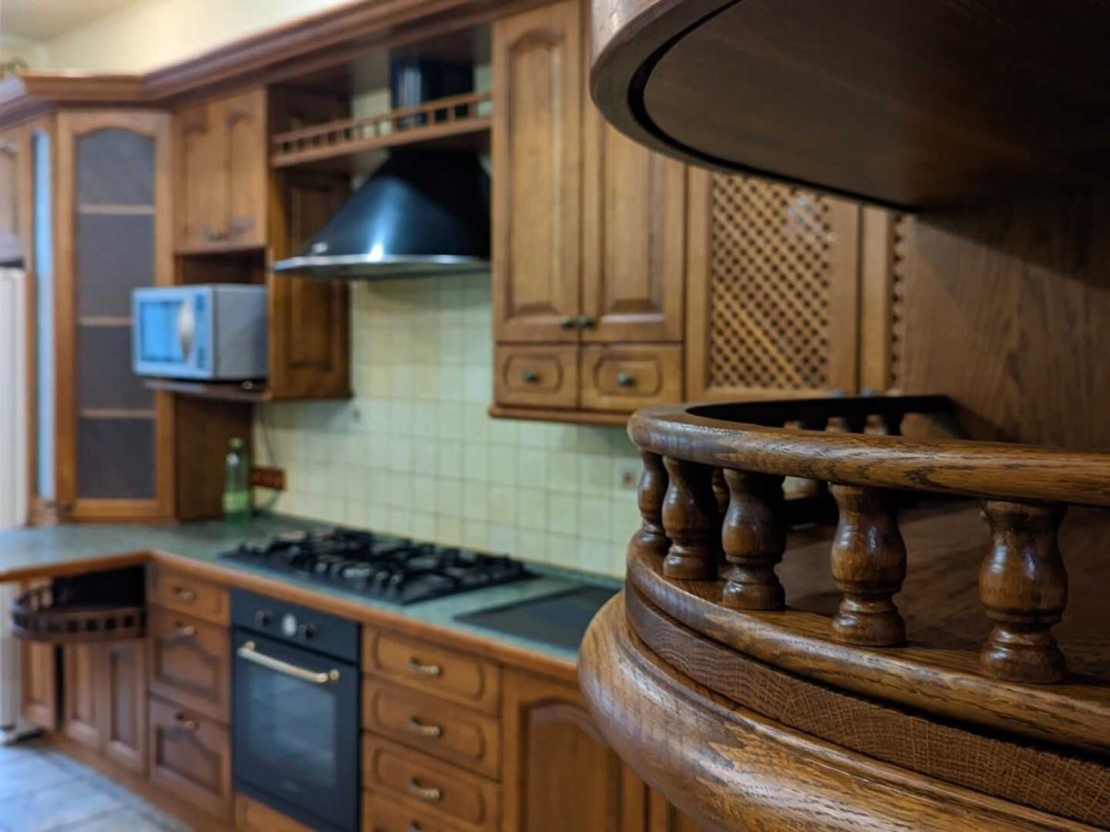 В кожній з кімнат є необхідний для комфортного проживання набір меблів. Кухня облаштована побутовою технікою: газова поверхня та духова шафа, холодильник типу side-by-side "LG", мікрохвильова піч. Додатково наявний базовий комплект кухонного посуду.