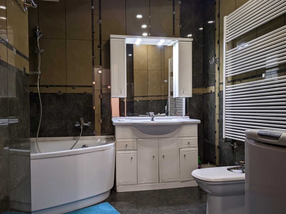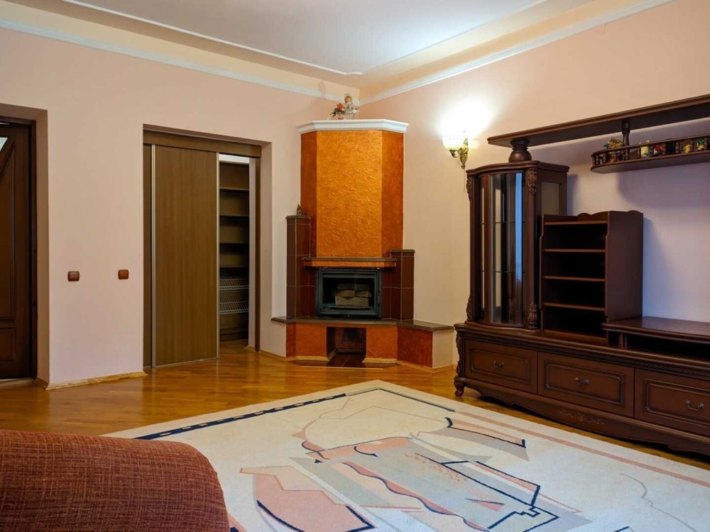 Суміжний санвузол з ванною, гігієнічний душ. Опалення індивідуальне, у вітальні облаштований робочий камін.
