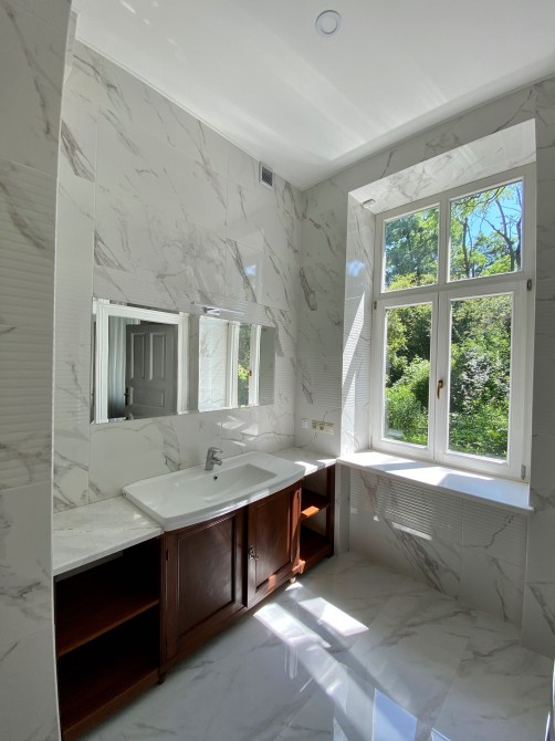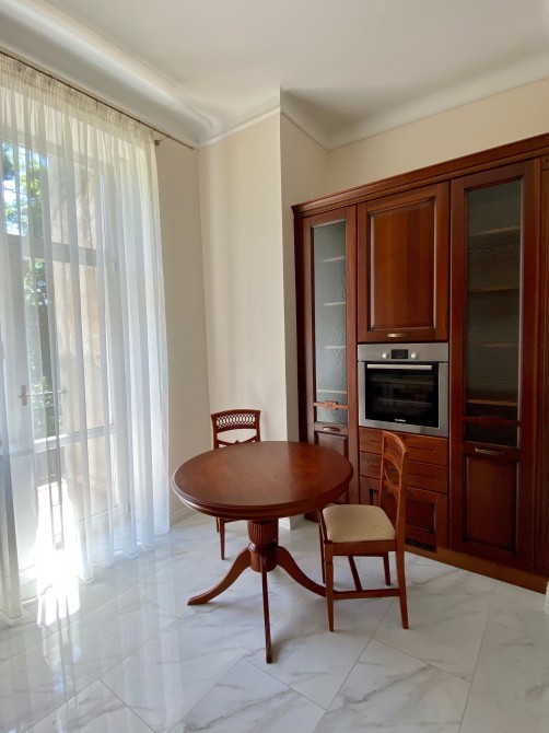 Всі кімнати великі, просторі, з високими стелями. Вікна - деревʼяні склопакети, підлога - натуральне дерево, меблі італійського виробництва також з натурального дерева. Є великий балкон з кухні з виглядом на власний дворик.