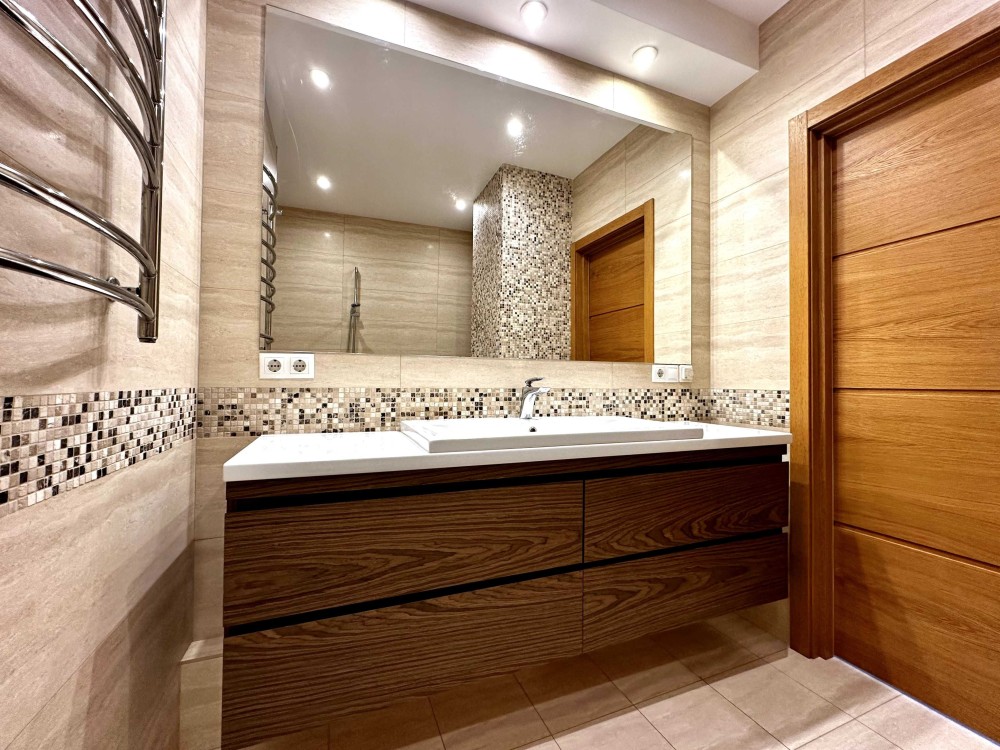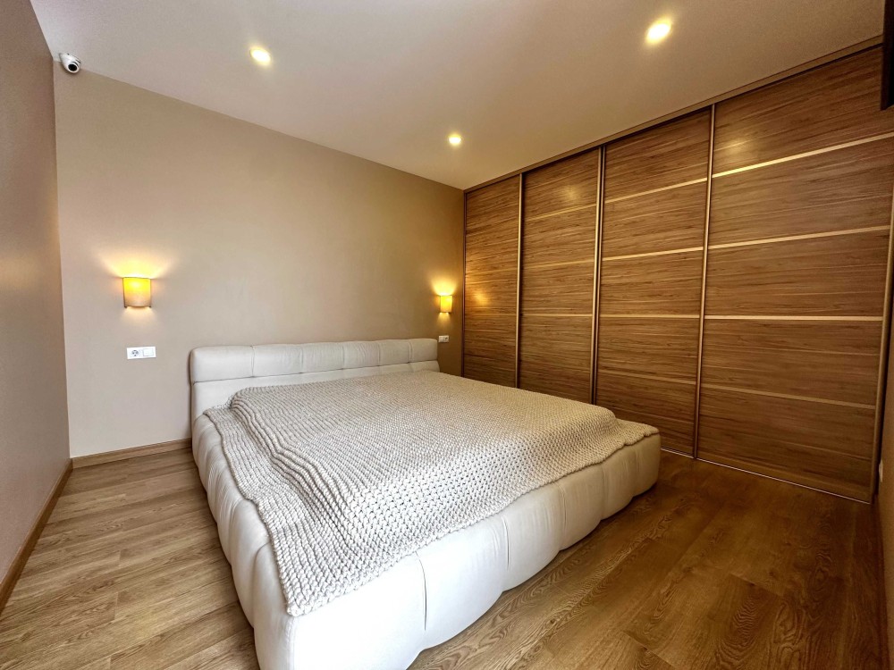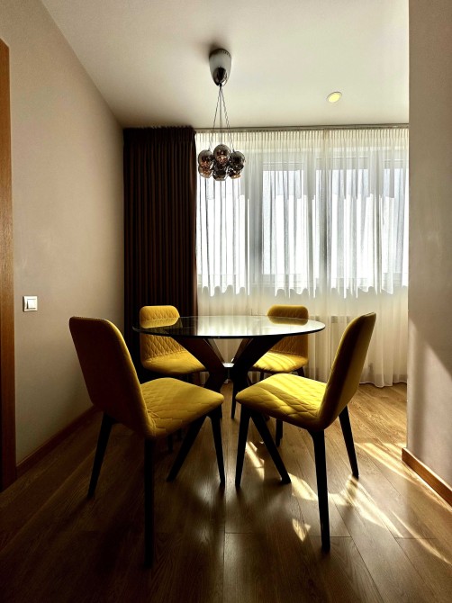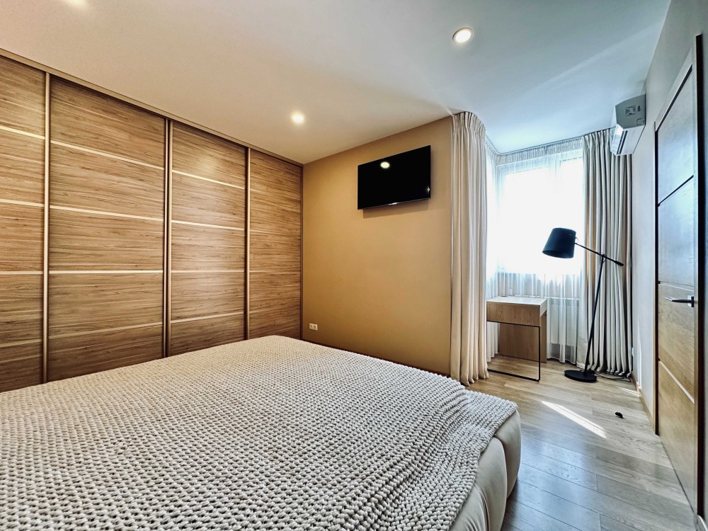 Сучасний ремонт, зручне планування: три кімнати – велика вітальня-студія і дві окремі кімнати. Два санвузли. Дитяча може бути кабінетом. Два ліжка з ортопедичним матрацом, великий диван, багато містких шаф. Шумоізоляція, підігрів підлоги.