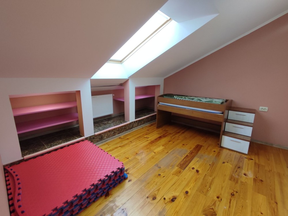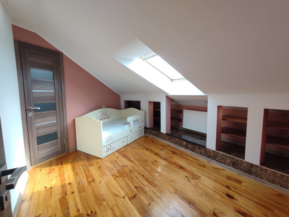 На першому поверсі:кухня- вітальня, окрема кімната, душ,великий коридор з місткою шафою.
