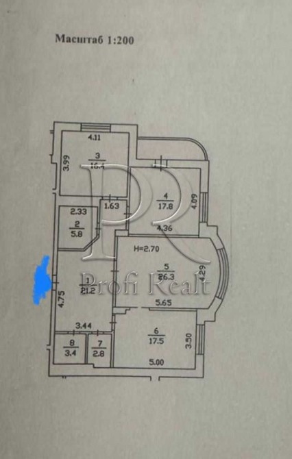 Три кімнати 16м , 18м та 26м, кухня - 17,5м, гардеробна, 2 сан/вуз.