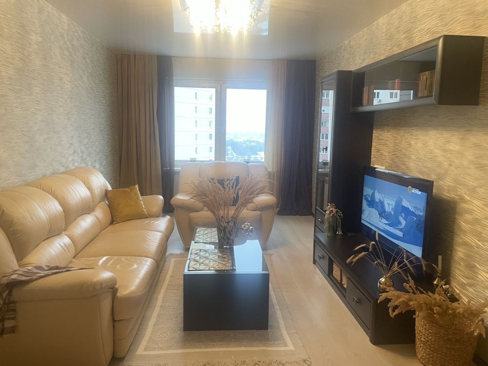 Оренда,простора, видова, трикімнатна квартира по проспекту Григоренка 14 з якісним ремонтом , повністю укомплектована новими меблями технікою, кондиціонерами.Квартира розташована на 18 поверсі 25 поверхового будинку, загальна площа 91 кв. метри , три окремі кімнати , велика кухня , 2 санвузли, встановлені лічильники на тепло , воду, світло.Квартира з чудовим видом, поруч дитячий садок , школа,NOVUS,зелена територія з озером.Візд на теріторію через шлагбаум , завжди є місця для парковки,відеонагляд, консєрж, метро Позняки 15 хвилин пішки.