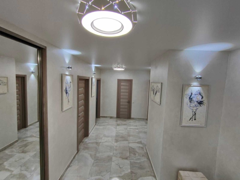 Квартира розташована всередині будинку на 8-му поверсі, площею близько 100 м. Тиха, тепла та сонячна.