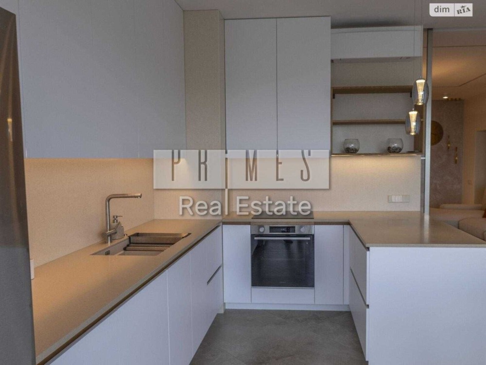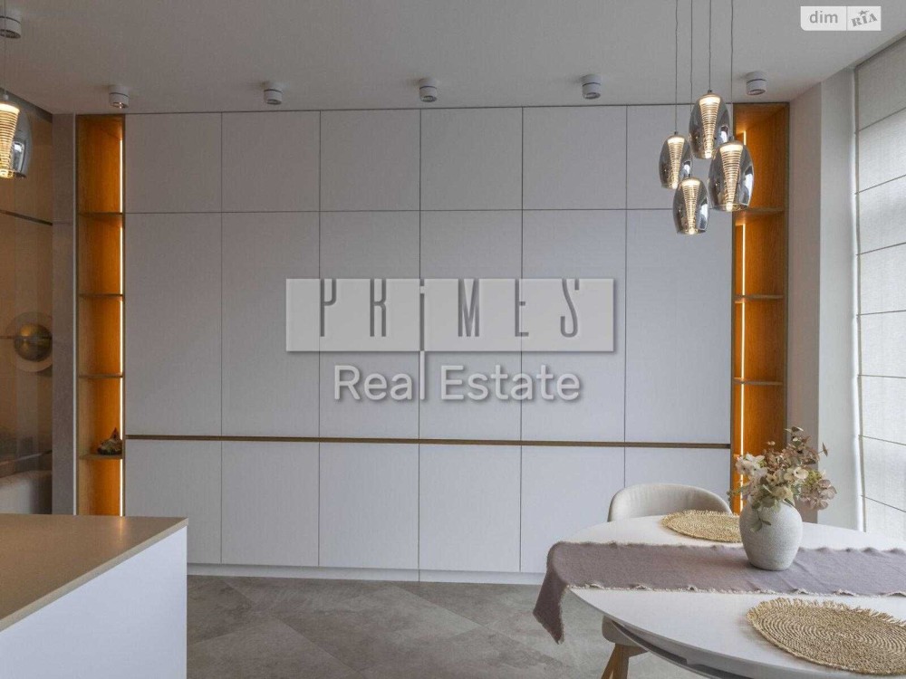Квартира з дизайнерським ремонтом, вітальною для прийомів, майстер-спальнею з приватною ванною, двома спальнями з гардеробними та окремою пральнею.