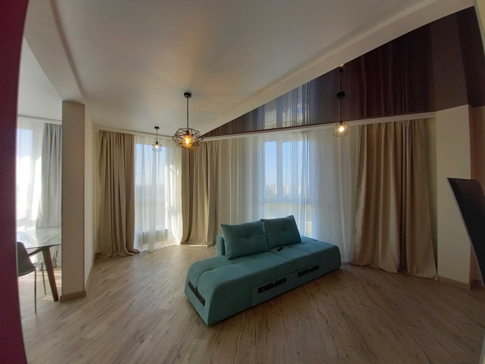 Пропонується в довгострокову оренду п'ятикімнатна панорамна квартира на двох рівнях з чудовим видом на Київ. Площа - 110 квадратних метрів.
