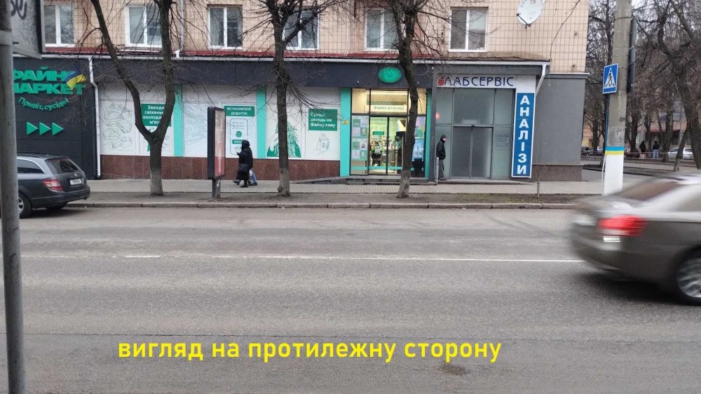 -поряд: ОН клінік, с/м ФАЙНОМАРКЕТ, магазини Одежі, Взуття, Дитячих іграшок, Кафе та інший стріт.