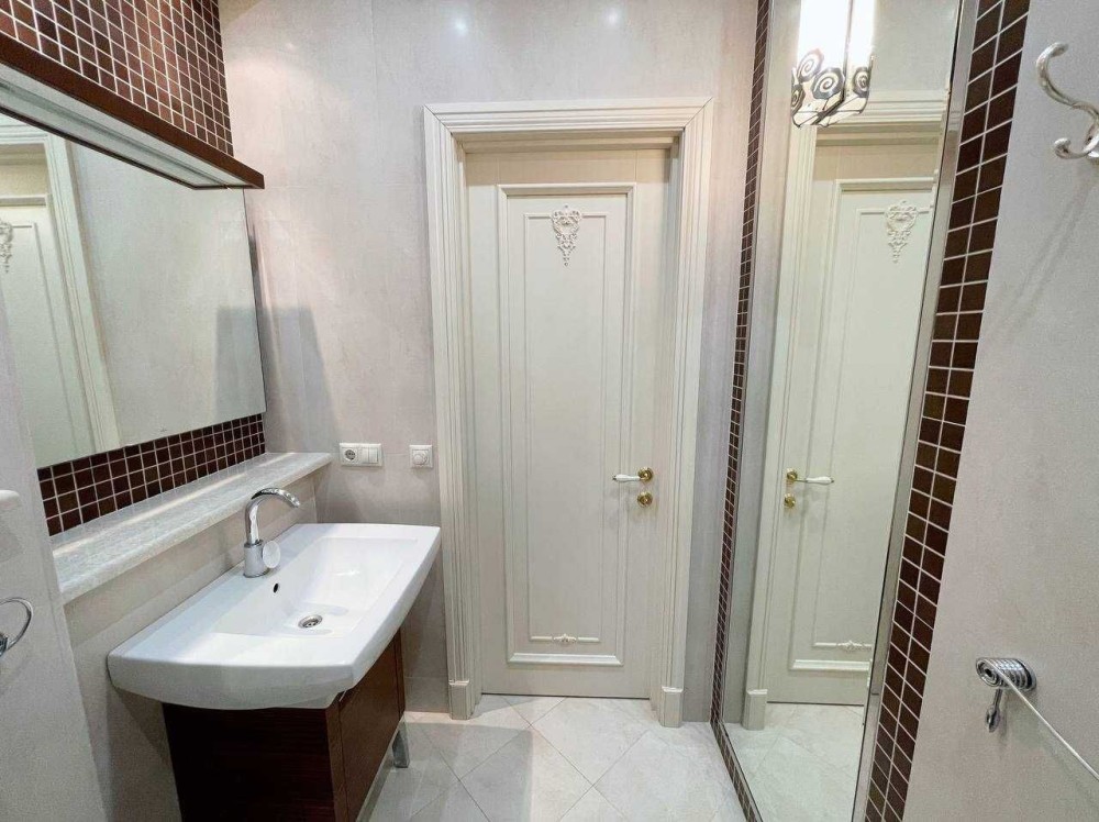 Інтер’єр виконаний з дорогих, якісних матеріалів, з продуманими деталями для максимального комфорту. У всіх зонах, де покладена плитка, встановлена тепла підлога.