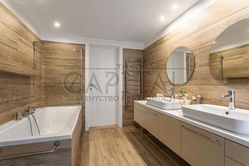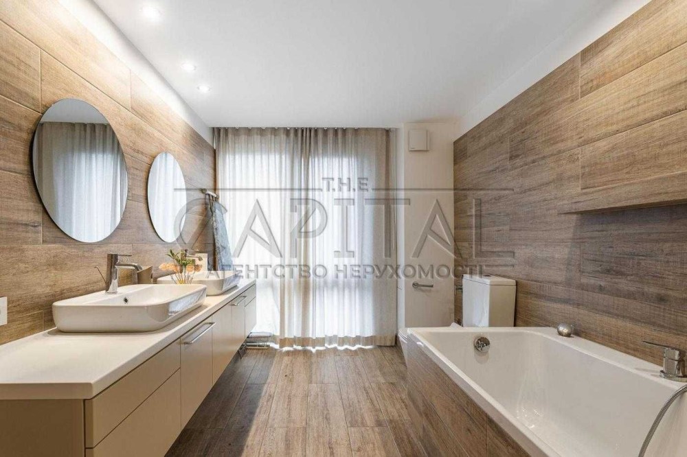 • На першому поверсі – плитка з підігрівом та охолодженням. У житлових кімнатах – якісний дубовий паркет, дубові сходи.