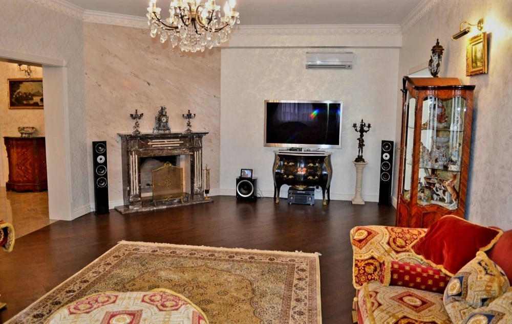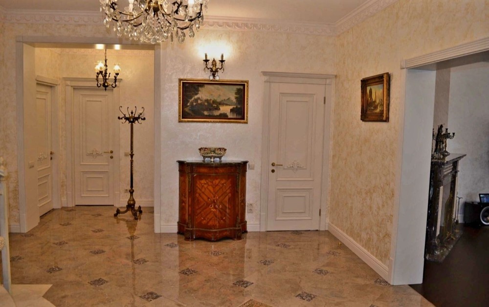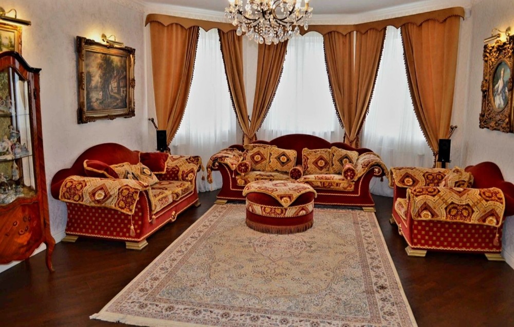 вишуканий інтер'єр включає антикварні меблі а також предмети старовини та мистецтва