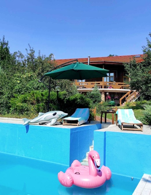"> Просторий, світлий будинок, висота стелі Н - 7 м ,на пагорбі у Ходосівці, з відкритим басейном з обігрівом, розмір басейну 6м х 16 м з місцем для купання дітей. Під'їзд асфальтований, будинок знаходиться на тихій не проїзній вулиці.