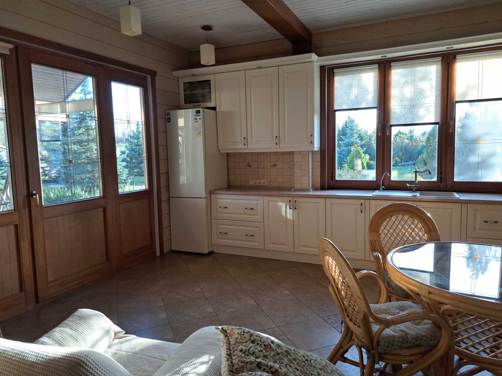 Оренда будинку біля Дніпра,біля котеджного містечка Золоче ,будинокдерев яний,теплий,гарної якості.В будинку 4кімнати плюс кухня вітальня,меблі та техніка гарної якості.Велика територія з чудовим ланшафтним дизайном,тераси,альтанки,річка біля двору.