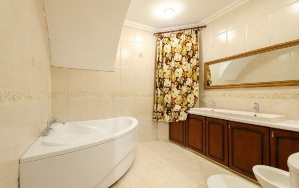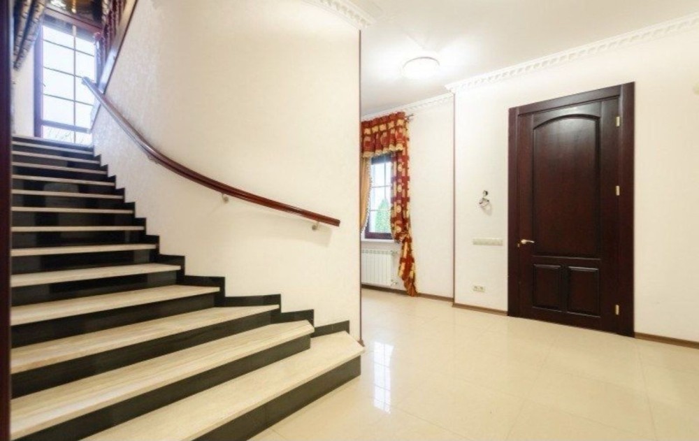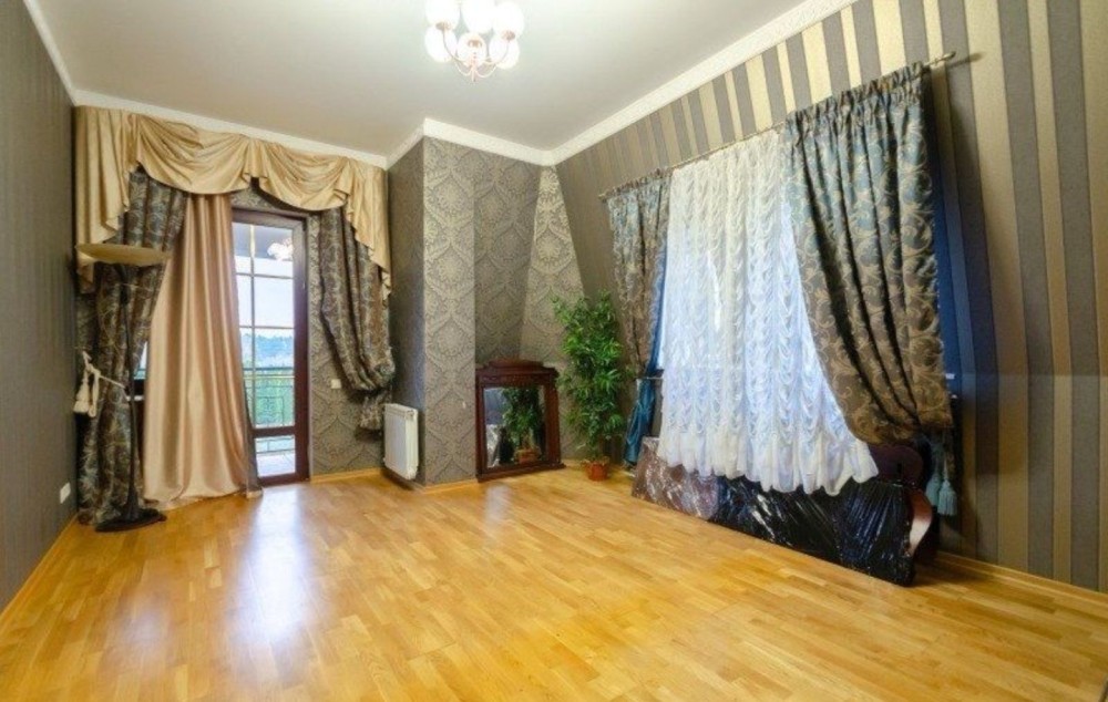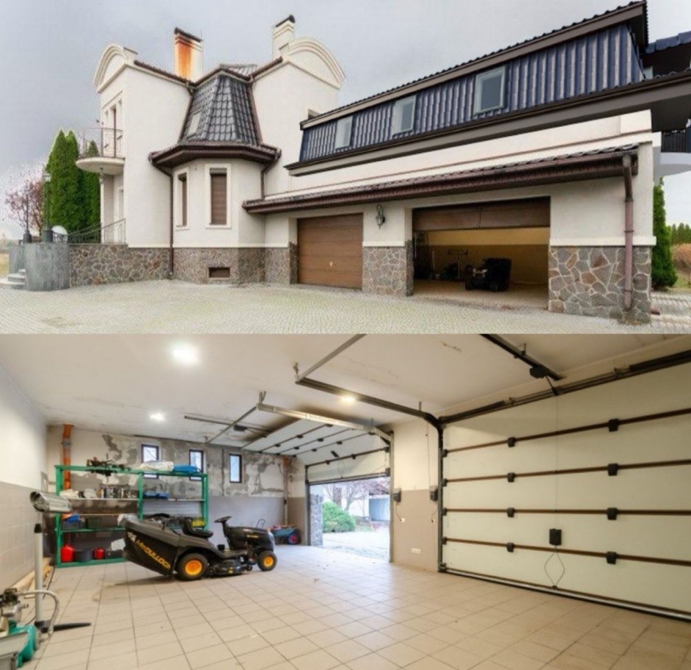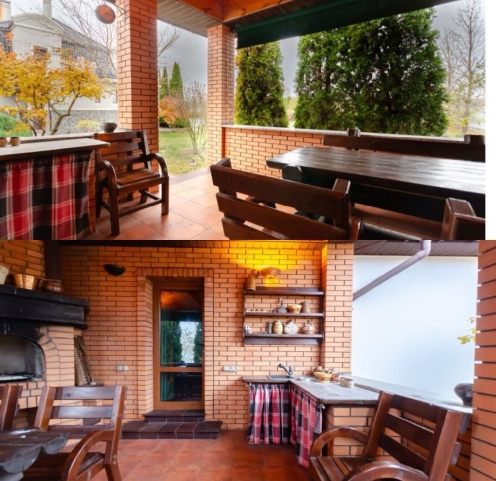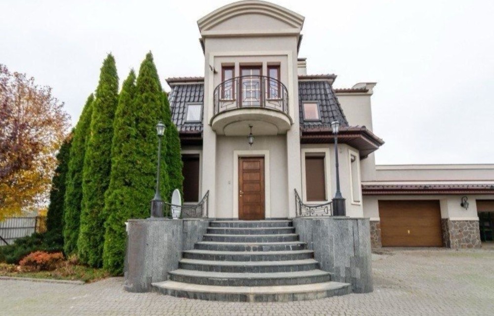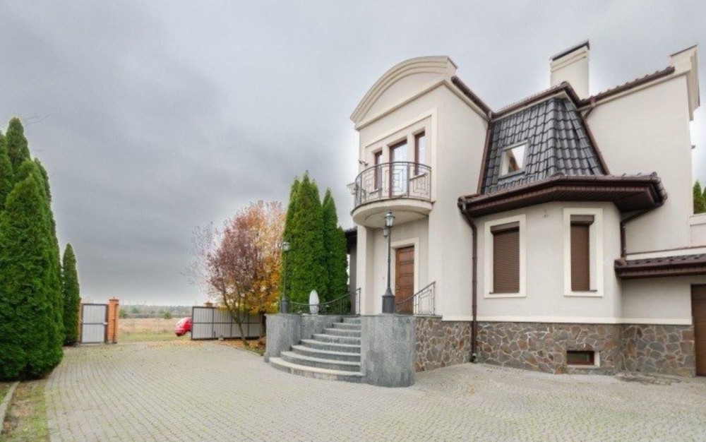 Здаємо в довгострокову оренду заміський будинок, 200 м2 житлової площі + цокольний поверх, усього 335 м2, три спальні, три сан вузли, велика вітальня, два каміни, гараж на дві машини з автоматичними воротами, велика зала в цокольному поверсі, яка може використовуватися як бомбосховище.