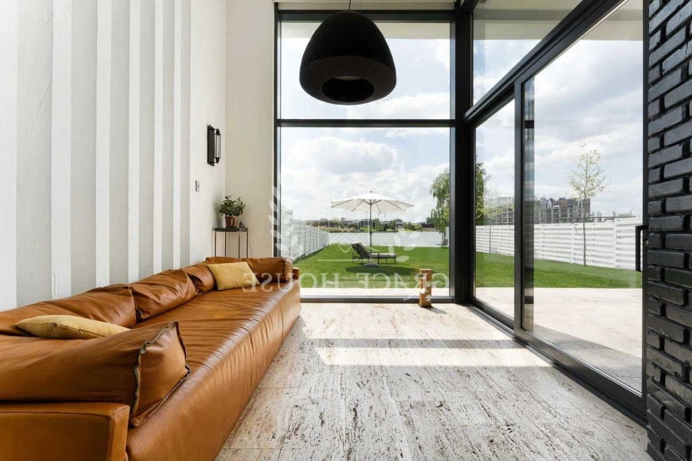 У здачу пропонується стильний заміський будинок із прямим доступом до водойми, розташований у закритому котеджному комплексі «Хутір Ясний» поблизу Лісників/Ходосівки (Обухівський напрямок).
